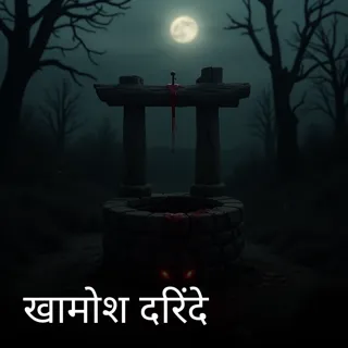 A dark, deserted village under a stormy night. At the center stands an ancient well, its walls smeared with streaks of blood. Beside it lies a broken slipper, splattered with drops of red. The moon hides behind clouds, the silence broken only by whispers. From the shadows, glowing red eyes stare back… as if a Silent Predator waits for its next prey.